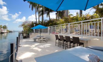 Corn Hole area located on the Huge Dock area along the canal and dockside entertaining area / bar
