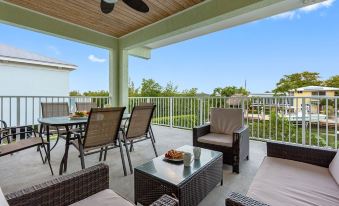 The outdoor area is the true highlight of Sombrero Siesta. Take a dip in the heated pool, perfect for a refreshing swim during the day or a relaxing soak under the stars. Lounge on comfortable chairs by the pool or sip your favorite drink on the shaded patio while enjoying the peaceful canal views. Boating enthusiasts will appreciate the private dock, where you can tie up your vessel or simply enjoy watching the boats go by. The canal provides easy access to open waters for fishing, snorkeling, or exploring the beautiful nearby islands.