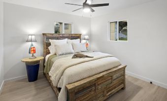 The Armadilla Villa main house has three beautiful bedrooms boasting two primary rooms with 2024 mattress' and a queen suite perfect for extra guests. The fully renovated kitchen and large dining area is perfect for your family gathering! The Casita - or as we call it - "The Little Dilla" is a separate cabin ready for your guests that might appreciate the privacy. The little Dilla has a 50in tv, a mini fridge, full bathroom, coffee maker and microwave.