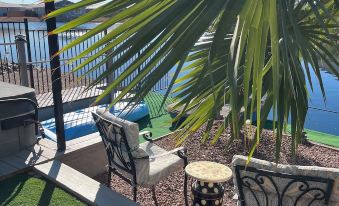 Peddle-boat for patrons enjoyment. Sorry … No swimming or fishing. 1.2 miles to The Duke Golf Course and Club House. 4.6 miles to Southern Dunes Golf Course. 13 miles to Phoenix golf, shopping. 4.5 miles to Harrahs Casino. 12 miles to Wild Horse CasinoAbout pets:No pets allowed.About checkOut:Check out before 11:00 AM.About children:Adults only.About checkIn:Check in after 2:00 PM.About smoking:Smoking is not permitted.Vapor & All Marijuana medicinal/ recreational.About minBookingAge:Minimum age to rent: 25.About events:No events allowed.
