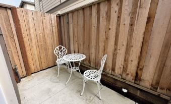 Your cozy getaway awaits in Marina at this adorable house. This charming property features 1 bedroom, 1 bathroom, plush queen size bed, modern desk, cold mini-fridge, microwave, 3-in-1 coffee maker, electric kettle, smart Roku TV, hair dryer, and heating. Kickback, relax, and enjoy everything the Monterey Bay has to offer. Enjoy cool ocean breezes on the front porch or your own private patio less than a mile from the beach. Walk to the Dunes shopping center a couple blocks away with Trader Joe’s, Target, Brass Tap brewery, Cinemark Movie theater, coffee shops and restaurants!About pets:No pets allowed.About checkOut:Check out before 10:00 AM.About children:Adults only.About checkIn:Check in after 4:00 PM.About smoking:Smoking is not permitted.About minBookingAge:Minimum age to rent: 18.About events:No events allowed.