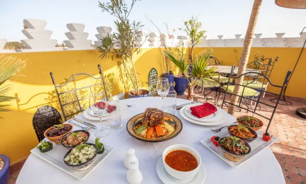 環境位置: 酒店位於麥地那區的小古堡內,距離德吉瑪廣場約20分鐘步程,周邊有多間餐廳及景點,交通便利。部分房間緊鄰廚房,但整體環境寧靜,適合休閒與探索市區。頂樓設有露台及小型泳池,可作為放鬆場地,並提供摩洛哥傳統風格的裝飾與氛圍,使旅客感受到當地文化特色。