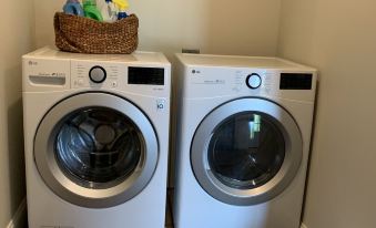 Clean sheets and pillowcases are provided for each bed. The kitchen is fully stocked with essential appliances, including a crockpot, toaster, blender, coffee maker, Keurig machine with K-Cups, dishwasher, microwave, and stove. We also provide a washer and dryer, along with laundry detergent, an iron, and an ironing board. Additionally, you will find a supply of toilet paper, paper towels, shampoo, conditioner, body wash, and hairdryers. Dishwashing liquid and trash bags are also provided.