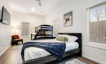 Lower Level Bedroom: Queen bed + single-over-full bunk bed, ideal for a family or group of kids sharing a room.