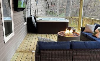 Escape to Huckleberry Ridge—your cozy mountain retreat in the heart of Massanutten Resort. This spacious 4BR/3BA home features a movie/game room, fully equipped kitchen, and a brand-new 1,000 sq ft double deck with hot tub, ping pong, and outdoor dining. Perfect for families and groups, and just minutes from skiing, hiking, golf, and Shenandoah National Park. Enjoy peaceful wooded views and modern comfort at its finest.