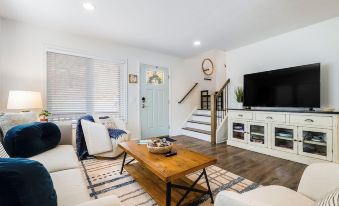 Main Level: Step inside to a warm and inviting open-concept layout featuring a bright living room with large windows and cozy furnishings. The gourmet kitchen is fully stocked and ready for everything from big group meals to quick breakfasts. Highlights include stainless steel appliances, generous counter space, and a dedicated coffee bar for your morning routine.