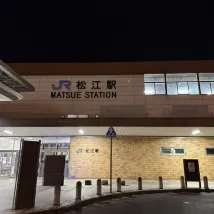 就在松江車站前一條街上,車站出來往左走5-10分鐘左右,好像車站對面也有一間,要記得分清楚。進來要走樓梯上二樓,拿着行李真的是不友好…酒店有温泉,男生是拿鑰匙,女生是每天換的密碼。酒店附近也算很方便,畢竟車站就在附近。永旺也衹要從車站走5-10分鐘。去松江城要坐車,或者走路要經過宍道湖,超級大風,不過落日很美~