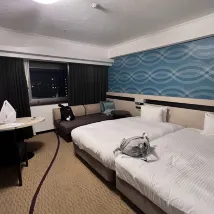 房間還算大,這次沒能體驗到温泉服務,有點遺憾。酒店很大,位置稍有一些遠,但房間內箱子能攤開,已經很好了。