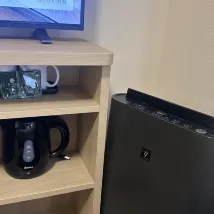 飯店就在富山電鉄正上方,交通方便。備品齊全,服務人員也很親切,單人房空間15平米,算寬敞,還有一個小餐桌,只可惜比較老舊地毯有汚漬,其他清潔乾淨。有免費現煮咖啡及茶包供住客使用。