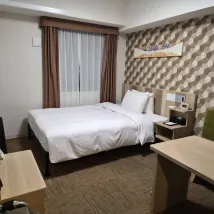 早餐非常豐富,建議做成精緻定食更好。地方距車站不到5分鐘,樓下就有Lawson, 後面街有Daiso,好方便。房間舒適、寛敞,温泉是白色的白樺之湯,夜晚有免費茶泡飯,整體感覺非常好!