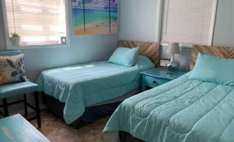 Before bed enjoy the new Air Conditioning Unit to cool you from the Florida sun, and then take a calming hot shower from our new tankless hot water heater providing hot showers for all in your group, both bathrooms featuring floor to ceiling tiled showers and equipped with Shampoo/Conditioner/Body Wash/Hand Soap and Hair Dryer (1). Head off to sleep in comfort in one of the three bedrooms, two with queen mattresses and one with two twins, all with comfortable mattresses. You will appreciate that the home is cleaned by a professional company from fans to floors each turn, and the mattresses and pillows are encased in zipper protection for you. While the entire home is air conditioned for you, each room in the home has a ceiling fan for you as well, and there is a portable fan if needed. Each window has blind coverings and the master suite also has blackout curtains if needed. There is a full length mirror on master suite door.