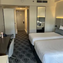 位於南十字車站對面,Sky Bus 總站也在車站裡面,街口即有電車,交通很方便。接待櫃檯服務很好,我們約13:30抵達,讓我們提早辦理入住,安排了面對車站的房間。洗臉盆的排水很慢,我第二天跟櫃檯反應以後,約莫10分鐘,維修人員即抵達房間處理。
