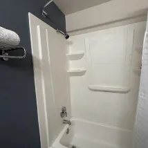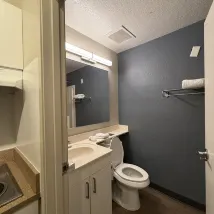 房間面積在美國來説是正常水平,有冰箱、微波爐、燃氣灶和抽油煙機,適合長住,洗手間衞生一般,而且重點是洗澡水基本就是冷水,差評
