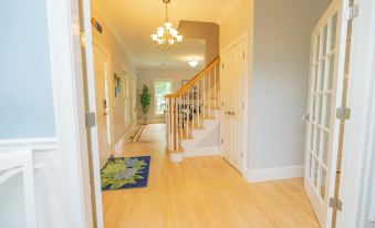 賓客可以不受干擾地進入整個房源。部分存放業主物品的儲藏區已被上鎖。賓客可以享用整個室外場地、寬闊的前草坪、後院泳池以及從泳池小屋一直到頂層閣樓的所有房間。