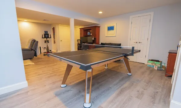 The basement also boasts a ping-pong table and state-of-the-art home theater, perfect for family movie nights or watching the big game in style!