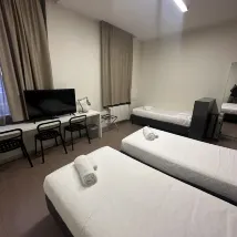 房間很普通,沒有冰箱,空調噪音大,而且動力不足。早餐品種不多,但都很新鮮,菜色也夠。飯店大廳可以買到零食和飲料,以及拖鞋、衛生用品和手機充電器等小物。 Lidl超市、迷你超市、咖啡館和披薩店都在不遠處。飯店經常停電。從飯店搭乘電車到市中心很方便。工作人員很友好。我喜歡這裡的一切。