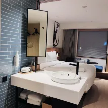 Amazing hotel!! The staff were very friendly and helpful. Large room, incredibly comfortable beds, good temperature control. Very nice shower room. One downside was there was only a small table (there we two of us). There was a shared kitchen and lounge area, which were very nice. The coffee was excellent. I would love to stay there again. Very close to the bus stop and whirlpool tour. But public transport on the island is very limited so it is difficult to get to other attractions if you don't have a car. There is local bike hire, but they were out of/didn't have e bikes, and the hills are very steep.