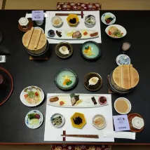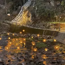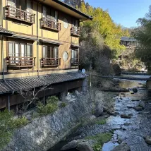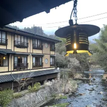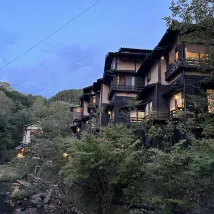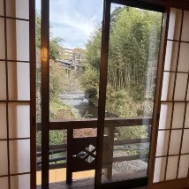 房間裏可以看到河上水燈,有6-7個私湯,個人覺得立湯很舒服,2個公湯,一個大的景色很好,小的就遜色一點了,每天男女對換,餐食就正常水平,該有的都有,餐廳晚上也有水燈可以看到,後門離鎮中心不遠,正門其實在大巴進入黑川的第一家,大門口在彎進去的地方比較隱蔽所以有評論説比較難找,都有指示的。但是提前沒有郵件聯繫車站接送和有什麼餐飲過敏,本人因為先住了深山山莊,第二天的行李有深山送到山之子,去小鎮逛了一圈再過去走的後門還好找,住一天的小夥伴如果有行李還是自己聯繫一下接站,第二天有送到車站,總之還不錯。