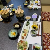 家庭人數10人以上,旅館安排了獨立大房間享用早餐及晚餐,食物美味之餘,旅館也有貸切温泉♨️,還有免費按摩設施,家人感到十分滿意。