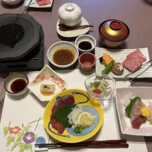 第一天到達時預約接泊的時間已滿,在隔日早上退房時,下著大雨,我們詢問巴士站寄放行李處,如何去,結果有位飯店先生,就去開車送我們到行李寄放處,還載我們到前面的巴士站,介紹坐車的地方,真的很感謝,不用讓我們在風雨中推著行李 飯店的早、晚餐都很精緻,好吃的套餐,用餐會幫每房客人安排在專屬的廂房 有好多種泡湯屋的選擇,可以體驗不同的風格