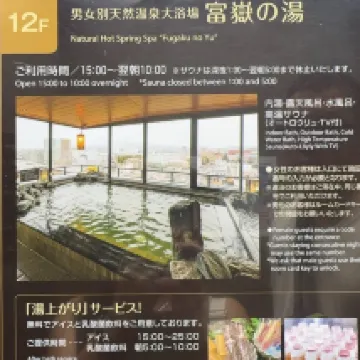 天然温泉「富岳之湯」【住宿客人免費】:湯泉好。 位置很好,就在三島站旁邊,車站就可以拍富士山。 美中不足的是大堂有點小,就三張小桌子可以喝茶,早餐時間就沒得坐了。