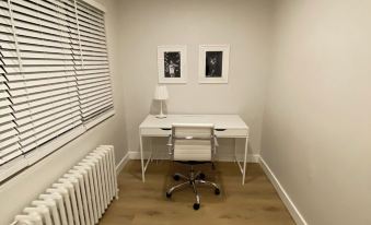 2 bedroom, 1 queen bed and 1 double bed. Large kitchen, full bathroom, living room with dining area and work space with desk. Free wifi and cable. Free public overnight city parking lot within 100 metres.