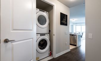 Brand New unit with all Brand New appliances. Full sized ensuite washer dryer, stainless steel stove, fridge, dishwasher & microwave.