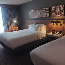 Overall, our stay was fine, but there were a couple of issues. The bedside cabinet was noticeably dirty, which affected the cleanliness of the room. Additionally, our room was located near a vending machine, and the noise from it was slightly disruptive.