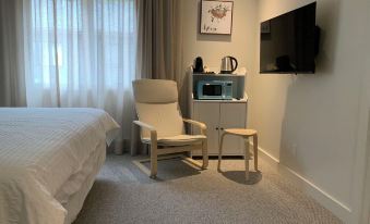 Studio with kitchenette. 1 king size bed+a queen size sofa bed. Deck with BBQ grill. Equipped with same appliances as the rooms on the 2nd floor+dishwasher and mini-oven.
