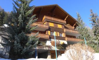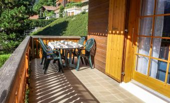 Small residence "La Tour d'Antheme". In the resort, in a quiet, sunny, elevated position, in a cul-de-sac. In the house: storage room for skis, washing machine, tumble dryer (for shared use). Parking at the house. Grocery 200 m, supermarket 800 m, restaurant 100 m, bakery 600 m, café 500 m, 2 minute walk to the centre, bus stop 50 m, railway station "Champèry Village" 300 m. Tennis 550 m, walking paths from the house 1 m, cable car 700 m, ski rental 600 m, ice rink 550 m. Nearby attractions: Les Dents du Midi, Val d'Illiez 5 km, Monthey 12 km, Champéry Aventure Parc 2 km, Montreux 35 km. Well-known ski regions can easily be reached: Portes du Soleil. Hiking paths: Portes du Soleil. "La Tour d'Antheme", 3-room apartment 90 m2 on 2nd floor. Object suitable for 5 adults + 2 children. Spacious and bright, comfortable and tasteful furnishings: living/dining room with 1 sofabed (140 cm, length 200 cm), open-hearth fireplace (only for decoration), TV, DVD and DVD collection available. Exit to the balcony. 1 double bedroom with 1 double bed (2 x 90 cm, length 190 cm). 1 room with 1 bed (80 cm, length 190 cm), 1 x 2 bunk beds (80 cm, length 190 cm). Exit to the patio. Large, open kitchen (4 hot plates, oven, dishwasher, microwave, electric coffee machine, raclette grill, fondue Set (chinoise, cheese)) with dining table. Bath/WC, shower/WC. Electric heating. Balcony, south-east facing position, small patio, south-west facing position. Balcony furniture, barbecue (portable). Very beautiful view of the mountains, the countryside and the resort. Facilities: Internet (WiFi, free). Please note: non-smokers only.