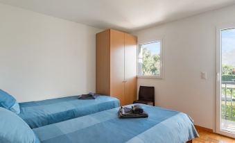 Large resort "Residenz Marina". On the outskirts, 300 m from the centre of Le Bouveret, in a quiet, sunny position, 200 m from the lake, 50 m from the canal. In the house: central heating system. Shop, grocery 800 m, restaurant, bakery 500 m, bicycle rental 190 m, bus stop "Bouveret village" 1.2 km, railway station "Le Bouveret" 300 m, pebble beach 200 m, outdoor swimming pool 300 m, indoor swimming pool 7.2 km, thermal baths 30 km, public bathing area 300 m, bathing lake "Léman" 300 m. Sports harbour 200 m, golf course (18 hole) 15 km, surf school 200 m, tennis, minigolf 12 km, walking paths from the house 300 m, mountain railway 15 km, slopes 18 km, ski school 18 km, children's ski school 35 km, sled run 29 km, cross country ski track 35 km, ice rink 18 km. Nearby attractions: Parc Aventure 17 km, Château Chillon / Fort de Chillon, Swiss Vapeur Parc 100 m, Aqua Parc 500 m. Well-known ski regions can easily be reached: Les Portes du Soleil 18 km, Villars 35 km, Leysin 31 km. Well-known lakes can easily be reached: Lac Léman. Hiking paths: Portes du Soleil. The keys‘ handover takes place by the agency Interhome in Bouveret. Neighbourhood highly sensitive to noise. Quietness and good behaviour expected. "Tasman S16/R", 3-room apartment 117 m2 on 2 levels. Comfortable and tasteful furnishings: living/dining room. Exit to the terrace. Open kitchen (oven, dishwasher, 4 ceramic glass hob hotplates, toaster, kettle, microwave, freezer, electric coffee machine, Capsules for coffee machine (Nespresso) extra). Sep. WC. Upper floor: 1 room with 2 beds (90 cm, length 200 cm). Exit to the balcony. 1 room with 2 beds (90 cm, length 200 cm). Exit to the balcony. Bath/WC. Heating, boiler. Balcony, small balcony terrace. Terrace furniture, deck chairs (1). View of the mountains and the canal. Facilities: washing machine, dryer. Internet (WiFi, free). Parking space n 2 (roofed). Please note: non-smokers only. Maximum 1 pet/ dog allowed.