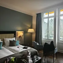 酒店離火車站非常近,對面就是。我們是二樓對湖的房間,房間蠻大的,就是電梯上來到房間盡然有好幾個樓梯。對拉箱子的人不友好。大堂進門的時候也有樓梯,雖然有斜坡但是拉箱子費勁,行李員也不是一直都在。淋浴是浴缸,而且這個浴缸非常高,對我們亞洲老年人不友好。早餐豐富,符合四星標準。餐廳的view也很棒,入住的時候,付按金的時候有小插曲,酒店不接受銀聯雙幣種卡,最後給了現金。check out 的時候付城市税的時候,雙幣種的磁條信用卡又可以刷了……不知道是不是處理的人不一樣,感覺check out 時候男工作人員比較有經驗。