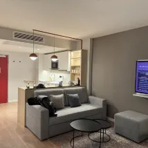 客房和公共區域都非常乾淨,床品也很舒服。自帶小陽台,視線無遮擋。後面就是一個商業體非常方便。周邊應該是居民區,非常安靜。廚房的設施也一應俱全,早餐也還OK,有時間可以自己做。距離主火大概十來分鐘,很適合家庭入住,會再次預訂的😊