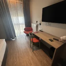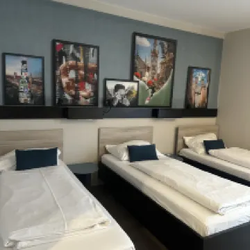 雖然交通不太方便,但房間很寬敞,非常舒適。價格在慕尼黑來說比較便宜,而且他們還提供免費飲用水,我覺得這點很不錯。