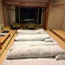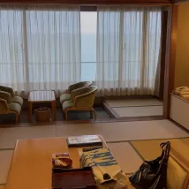 日升官 房間經典日式榻榻米三分離加陽台 景色一流 稍微有一點小 跟其他日式酒店榻榻米比不大 感覺最多睡四個人 衞生情況還可以 相對還是老舊 館內很大 本館 日升 山上是三棟樓 連廊連結 非常大 要走挺遠 但是酒店很貼心會給長者準備輪椅 出島有小巴和烏龜船兩種方式 基本全天都有 差不多15-30min一班 根據時段不同 忘歸洞很震撼 會男女換邊 所以至少住兩天 不然看不到忘歸洞大三角真的很遺憾 硫黃鹹水温泉 對皮膚非常好 不摻水的活水 美中不足1是温泉洗澡地面會掉落石子 會紮腳 應該加強清理 2就是酒店的餐食 一泊兩食都是自助 品種多但是感覺沒什麼可吃的 金槍魚不限量但是品質不行 所以可以不定餐 海鮮市場附近的小定食金槍魚品質要好很多 或者白天去那智路上買一日券可以隨時下車吃 ps山上館的電梯一定要坐上去看狼煙山公園 晴天看太平洋日出一定很震撼