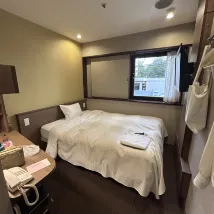 已經來住過第三次了,這次帶老公一起,所以住2張床,房間比較大,但是似乎沒有單人房的新,例如床邊沒有手機充電插座,冷氣開關居然還是復古風的轉動鈕是安裝在床頭的。但是選這家飯店就是為了溫泉而來,開放時間是下午三點到隔天早上10點,一天可以早中晚泡三次,非常喜歡。隔天老公回去上班剩下我一個人換到單人房,局然有對外窗戶,很讚