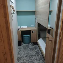 整體不錯 只是睡衣要自取不太衛生 大家都摸來摸去的 毛巾也是 需要工作人員轉交 沒有消毒液 直接拿毛巾 我覺得不是很衛生 另外淋浴間只有一間 要是被使用了 只能去公共澡堂