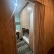 因為提早預訂了,入住很順利。房間裡有拖鞋,所以我光著腳進了房間⤵︎房間是小木屋。沒什麼問題,但晚上還是聽得到打鼾聲。浴室和桑拿浴室都還不錯。不過,如果客人多的話,會不會有點擁擠? 總的來說,我覺得性價比很高。