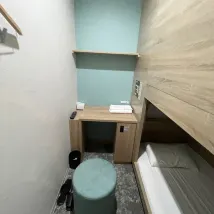 位置還算可以,距離電車站五分鐘步行,一出門口有lime停車點,再多走兩步可以借共享自行車。我覺得這家最大的優勢是公共設施質量很好且齊全,免費飲料機能選的種類很多也很好喝。入住時會給你一個手環,用手環刷自己房間區域和浴室的門禁,也可以手環付款售貨機商品和洗衣機,好像最大能刷5000日元的價格,等到退房時在前台付款。小屋裡設施很新,而且能感覺到是整體設計過的,很喜歡燈開關的設計,有椅子和桌子,能滿足基本辦公的需求。唯一美中不足的點是小屋的門衹是一個拉簾,很薄不隔音,而且沒有任何鎖,哪怕衹加一個能在屋內側鎖上的鎖也能有不少安全感。總之非常推薦這家。