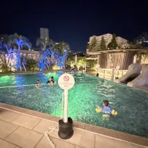 先寫優點: 1.位置佳-走三分鐘就是熱鬧的集吃喝玩樂於一體的國際通; 2.早餐雖然不算fancy,但勝在品種還算豐富,而且有些菜式會每天變化; 3.晚上8:30-9:30餐廳提供免費拉麪,非常暖心; 4. 早餐時間後開始提供一整天的免費酒水飲料和三種口味的冰淇淋,家長和孩子們都樂壞了; 5. 每天下午5:30-6:30還有免費的遊戲、手工製作等活動,非常適合帶小朋友的家庭; 6: 還有提供免費的游泳池和温泉,足不出户也可以很開心。 現在來説缺點: 1. 電梯衹有2台, 每天早上用餐時間要等很久電梯; 2. 很多家庭都帶着孩子,所以公共區域永遠是人聲鼎沸; 3.在餐廳吃完飯要自己收拾碗筷放回指定區域,而且還要抹乾凈桌子; 4. 房間較小, 打開兩個行李箱基本就轉不過身了。 總之,瑕不掩瑜,還是非常推薦這個酒店,尤其是帶孩子的家庭。