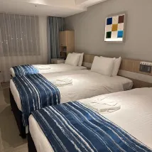 整體都算滿乾淨的,但是入住的房間內浴簾有髒物(感覺像鼻屎)除此以外,其他都很好~ 二樓人很多!除了第一天有下去吃宵夜 其他天數就都吃外面~ 整體服務還是不錯的! 三人房 空間足夠~兩大兩小可以