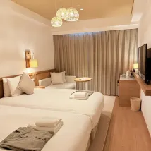 感謝您選擇我們的酒店並分享您的入住體驗! 我們很高興您對房間和床品感到滿意,能夠享受開闊的視野。我們也很高興您喜歡我們提供的防曬霜和洗漱用品,以及大堂的免費冰淇淋和飲品服務。 交通便利是我們的一大優勢,能夠讓您輕鬆前往國際通和北部一日遊的集合點。期待您下次再次光臨,祝您旅途愉快!