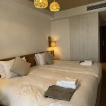 在國際通附近 地理位置還算不錯 很安靜 距離那霸機場打車在80元人民幣。最喜歡的是有泡湯的地方。每天出去玩回來都會去泡一下解乏挺好的 樓下一樓有咖啡廳 時間段內可以喝免費飲料 打掃是隔三天一次 但是每天都會在門口放睡衣和浴巾 還是蠻方便的 房間不大 但也算乾淨 睡個覺還是不錯的 性價比高吧!哦 對了 兩張床是拼在一起的 所以我們兩大一小睡覺空間蠻大的 這點很值得讚美!