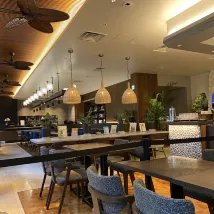 位置非常方便,電車旭橋站下來步行五分鐘,機場過來很快。酒店對面是那霸巴士總站,去哪兒都方便,後面我們換度假酒店也是在這裏搭的車。房間雖然二十多平但還是有點擁擠,可能是層高矮的原因,日本市區酒店都這樣也不能太計較。房間原木風,整體比較整潔,但是窗邊的沙發實在很臟,上面有可疑的污漬,以及我很早預訂了房間,但最後給了一個3樓層,正對停車樓,私隱性和視野實在不怎麼好。下樓和前台溝通後告知這是提前預留好的房間無法更換,好吧。酒店的亮點是樓頂的浴池可以泡澡,消除一天疲勞,以及一樓的餐廳可以購買一個三小時的喝酒自助套餐,酒鬼最愛。