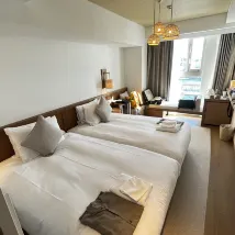 飯店位置極佳,離機場和市中心都非常近,步行15分鐘即可到達,搭乘單軌列車20分鐘即可到達機場,非常方便。工作人員非常友好,儘管語言不通,但他們仍然盡力與我們溝通,入住期間,他們還為客人準備了Blue Seal冰淇淋 :)。房間很小,就像日本常見的小房間一樣,但對我們來說還可以,而且乾淨整潔,裝飾現代。他們還為客人提供各種便利設施,例如大廳提供的便利設施和留在房間裡的睡衣。總而言之,我們住得很愉快 :)(附註:照片看起來有點奇怪,因為我趕緊把我的男朋友刪掉了🤪)
