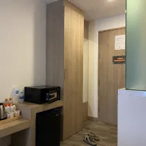 ที่พักสะอาด ขนาดกำลังพอดี มีสิ่งอำนวยความสะดวกครบครัน มีไดร์เป่าผมให้ด้วยค่ะ มีมินิบาร์กาแฟให้ เหมาะสำหรับแวะพักผ่อนก่อนออกเดินทางค่ะ