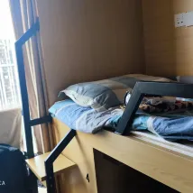 我對住的地方的要求其實就是乾淨整潔。這裏價格不算便宜但衞生條件堪憂。 入住第二天,晚上準備睡覺了,一拉床簾,掉下來一個大半根手指長的蟑螂,關鍵還沒打死,讓它給跑了。後來和室友説了這個,她們説就那天下午,她們剛打死一衹蟑螂。住了那麼多地方的青旅,第一次遇到這種情況。 另外,這裏就是自家住宅改建的,房間裏能用的區域就一半,其他地方都放了東西,亂七八糟的。 店家反覆強調有阿姨打掃衞生、消毒拖鞋,説房間裏不能吃有味道的東西。後來發現自己的鞋子也不能放。 偶然看見阿姨打掃衞生的過程,衹能説很敷衍,還把洗過的枕套晾在有襪子掛着的架子上。 進入房間需要三道門禁,每次需要等人開也是醉了。 可以説很魔幻了。