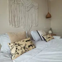 您好!我是雲溪雅宿主理人沫夕,感謝您給予小宿的美好評價。世間每一份相遇都很奇妙,不是我們足夠好是我們遇到的人都很好。沫夕一直很慶幸小宿經營至今所遇到的家人都是特別特別好的人,真誠且善良,總是給予小宿滿滿的温暖!您入住的是小宿禪悦家庭套房系列【竹風清韻】,這間房間屬於南站稀缺寬敞大平層,面積接近100平,這間客房我們溪蔓家居美學的設計師團隊精心打造了宋代美學的設計風格。空間設計規劃了三間卧室,分別擺放1.8m、1.8m、1.5m三張雙人床,適合6~9人居住,包含3位小童。公共區域設計了一張1.5m的書法桌,並提供多款書法臨摹貼以及筆墨紙硯、古風書籍、篆香、功夫茶具,入住的家人可免費體驗中國傳統文化:書法閲讀、焚香、點茶,可品嚐我們南京的特產雨花茶。用餐時間書法桌立馬變身為實用性的大餐桌。家人們可圍座在餐桌前品嚐南京特色小吃,邊吃邊聊,其樂融融。公共區域除了餐桌之外還設計了一張1.5m的多人沙發,可閲讀我們為您準備的古風養生書籍也可休憩。這是我們設計師精心打造的一個“多元化”的生活美學空間~房間內我們為您準備了1080P高清極米品牌投影儀及100英寸高清巨幕,除了體驗宋代文人雅士的生活方式之外您還可以體驗現代人的都市生活無限暢享美好的影音空間。洗衣房內我們為您準備了美的品牌的洗烘一體機及晾曬空間並且還為您準備了洗衣液和消毒液,充分解決您外出洗衣服的困擾,讓您的入住沒有任何後顧之憂!衞生間內的熱水器為80L大容量,不必久等便能享受舒適的沐浴時光。toto品牌的全智能馬桶,尊享星級酒店的如廁舒適體驗。房間內我們不僅為您提供景田瓶裝純凈水,還為您提供桶裝農夫山泉用於煮茶,可以更好口感的品嚐我們南京的特產雨花茶。一次性拖鞋、一次性浴巾、一次性馬桶套、紙巾、牙刷牙膏、沐浴用品…這些生活用品我們也會為您細緻的準備齊全,您不必擔心旅途匆忙之中忘記攜帶生活用品,小宿就是您的家,家裡有的生活用品我們都會為您一一備好。雲溪入夢,宿想清寧!我們願您:雲程萬里,溪伴順途!我們期盼着與您再次重逢🌹