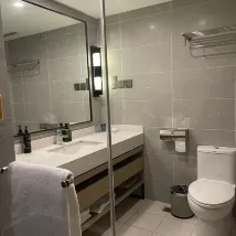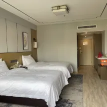 環境:氛圍感拉滿,身心都放鬆 酒店大堂裝修簡約大氣又不失温馨,暖調燈光搭配恰到好處的綠植點綴,採光通透不壓抑,不管是等候還是短暫休息都很舒服。走廊安靜無噪音,窗外視野開闊,沒有雜亂景象,整體環境乾淨整潔又有格調,拍照打卡都很出片,讓人一進來就卸下旅途疲憊。 設施:完善實用,住得超舒心 房間設施很齊全,床墊軟硬適中,睡起來特別解乏,床品質感很好。空調製冷制熱效果快,噪音小;衞浴設備完好,熱水充足且水温穩定,淋浴壓力剛好。電視畫面清晰、頻道豐富,Wi-Fi信號滿格,辦公刷劇都不卡頓,還有充電接口布局合理,細節設計很貼心,完全能滿足出行需求。 服務:暖心又專業,必須誇爆小劉和小周 重點表揚前台小周和大堂小劉!小周辦理入住高效快捷,全程微笑耐心,詳細講解了早餐時段、停車場規則,還主動推薦了本地小眾景點和交通路線,特別靠譜。小劉更是眼裡有活,看到我帶了行李箱主動上前幫忙,指引電梯時還提醒我留意隨身物品,後續有問題諮詢也回覆及時,態度熱情又周到,讓出門在外的人倍感温暖。 衞生:乾淨到細節,住着超放心 衞生狀況絕對滿分!房間地面一塵不染,角落沒有絲毫灰塵,床鋪整理得平整規範,布草潔白無異味、無污漬。衞生間洗漱台、馬桶、淋浴區都乾淨清爽,沒有水垢和水漬,連水杯都消毒到位,整體清潔度讓人完全放心,住着既舒心又安心。 四個維度都挑不出毛病,性價比超高,已經列入出行首選清單,下次來還住這家,必須給酒店和小劉、小周的優質服務點個大大的贊!