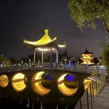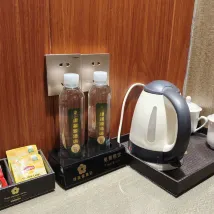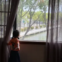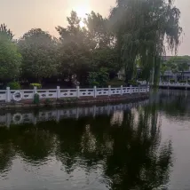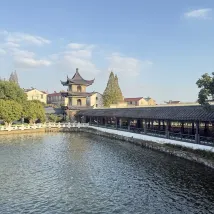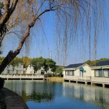 We stayed here for our last night in China after living in Nanjing for a few years. It was an interesting place to say the least! Huge room but very dated. Shower wasn’t cleaned properly - lots of hair stuck in the drain and hair all over the bathroom floor. Dirty carpets with stains on them. Nice outside balcony but it was too hot to sit outside (39C). Nice place to walk around and watch the sunset (even though it was very hot). There is a nice village near the hotel that we enjoyed walking around. No food or drink available so we had to order in. Breakfast was very basic. Staff were nice but no one spoke English so communication was challenging.